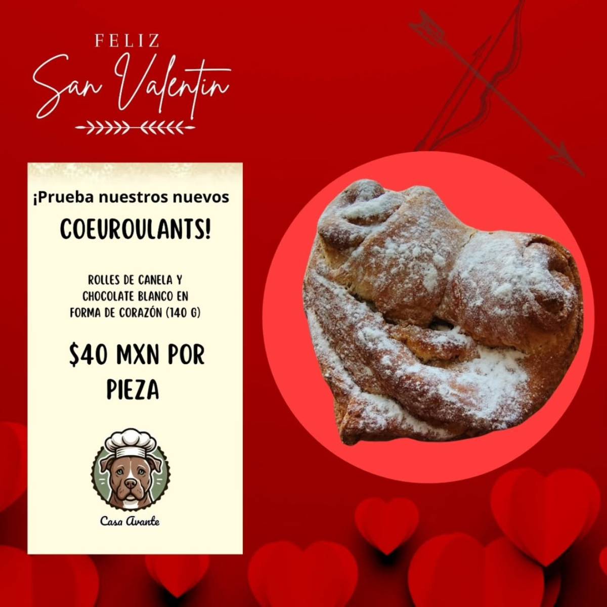 En esta temporada, han lanzado los courolants, una deliciosa fusión entre rollos de canela y chocolate blanco, presentados en forma de corazón. Con su textura suave y su irresistible sabor, son el detalle ideal para compartir o darse un gusto especial. Disponibles por $40 MXN cada uno, estos panes son una muestra más del amor con el que hornean cada creación.